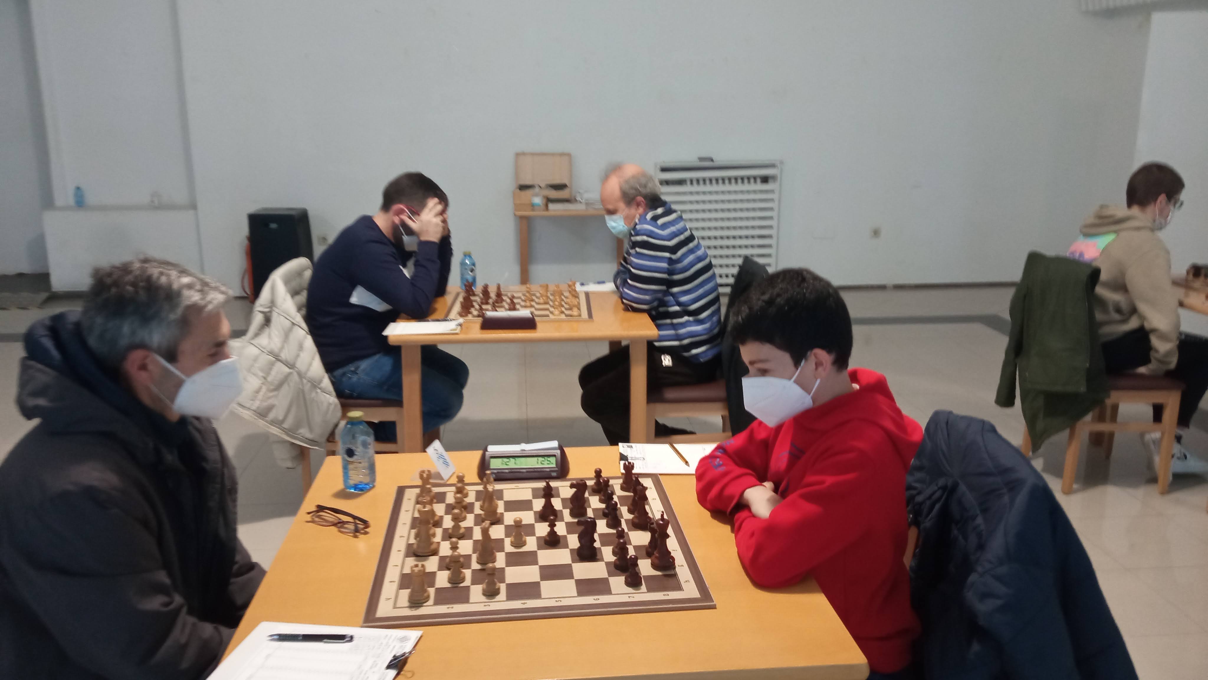 Chuso con negras jugó su siciliana y pronto consiguió doblar peones en c3 y con un pequeño truco táctico, ganó el peón de e4 en la jugada 10. Tras enrocarse, el negro devolvió el peón, pero pronto ganó otro en a2 y aprovechando que el rey blanco aún estaba en f1, ganó otro más en f2 y dejó a su rey contrario muy en peligro en el centro del tablero. Chuso con una buena combinación ganó la dama por torre y pieza, pero a la siguiente jugada recuperaba una pieza tras un jaque doble. Con mucho material de menos y un rey expuesto, José Antonio se rindió. En la 3, “Apa” jugó una Chigorin con blancas dónde la estructura de peones se asemejaba en cierta medida a una francesa del avance. El negro ganó espacio en el flanco de dama y obligó a los caballos blancos a ir a la primera fila. La posición del jugador visitante era mejor durante esta fase de la partida, pero el rey negro no se enrocó y eso daba opciones al blanco. Finalmente se rompió la tensión central, nuestro jugador alineó bien sus torres en las columnas centrales y con un detalle táctico, ganó un peón y cambió la última pieza menor. El blanco ganó otro peón más y logro cambiar damas, para llegar a un final de cuatro torres que a las pocas jugadas se convirtió en un final de torres por cada jugador donde Daniel Oliveros recuperó un peón. Apuntaba a final largo, pero el negro permitió avanzar al peón de “a” hasta convertirse en dama, mientras el suyo llegaba a la jugada siguiente también a la promoción en la casilla h1. Pero con el turno a favor, la dama de Enrique dio una secuencia de jaques precisos para con poco tiempo en el reloj, terminar por simplificar la posición para llegar a un final de reyes con peón de ventaja blanco “ganado”, que obligó al jugador mierense a rendirse.