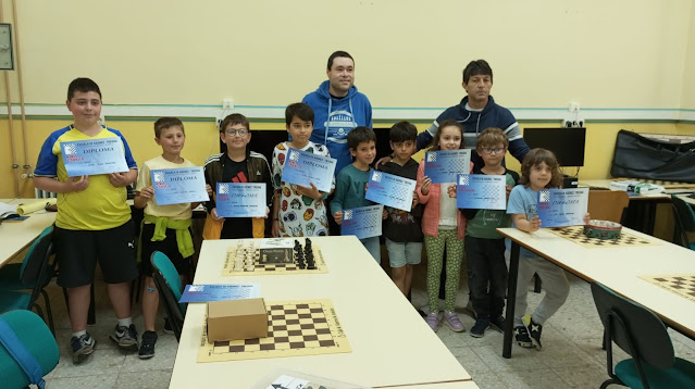 En el aula de Trevías, el taller impartido por Pablo Suárez finalizó el pasado 29 de mayo de 2024. Agradezco enormemente el apoyo del CP San Miguel una vez más. La actividad la realizamos en nuestra "aula del ajedrez" como el pasado año durante los meses que duró el taller (de enero a mayo). Agradecer también a las familias de los niñ@s y también a los propios alumn@s su comportamiento en general, lo pasamos bien y creo que aprendimos bastantes cosas. Los diplomas entregados fueron los siguientes:También en Navia, esta vez en el IES Galileo Galilei, y una vez más gracias a Julio, se impartió a principios de curso en los recreos un pequeño curso de iniciación básico para los alumn@s interesados y luego, en el segundo y tercer trimestre, se realizó un torneo entre alumn@s y profesores en el propio centro. Tras toda la competición, el vencedor final fue Marcos Fernández, del Valdesva (sí, otro año más).